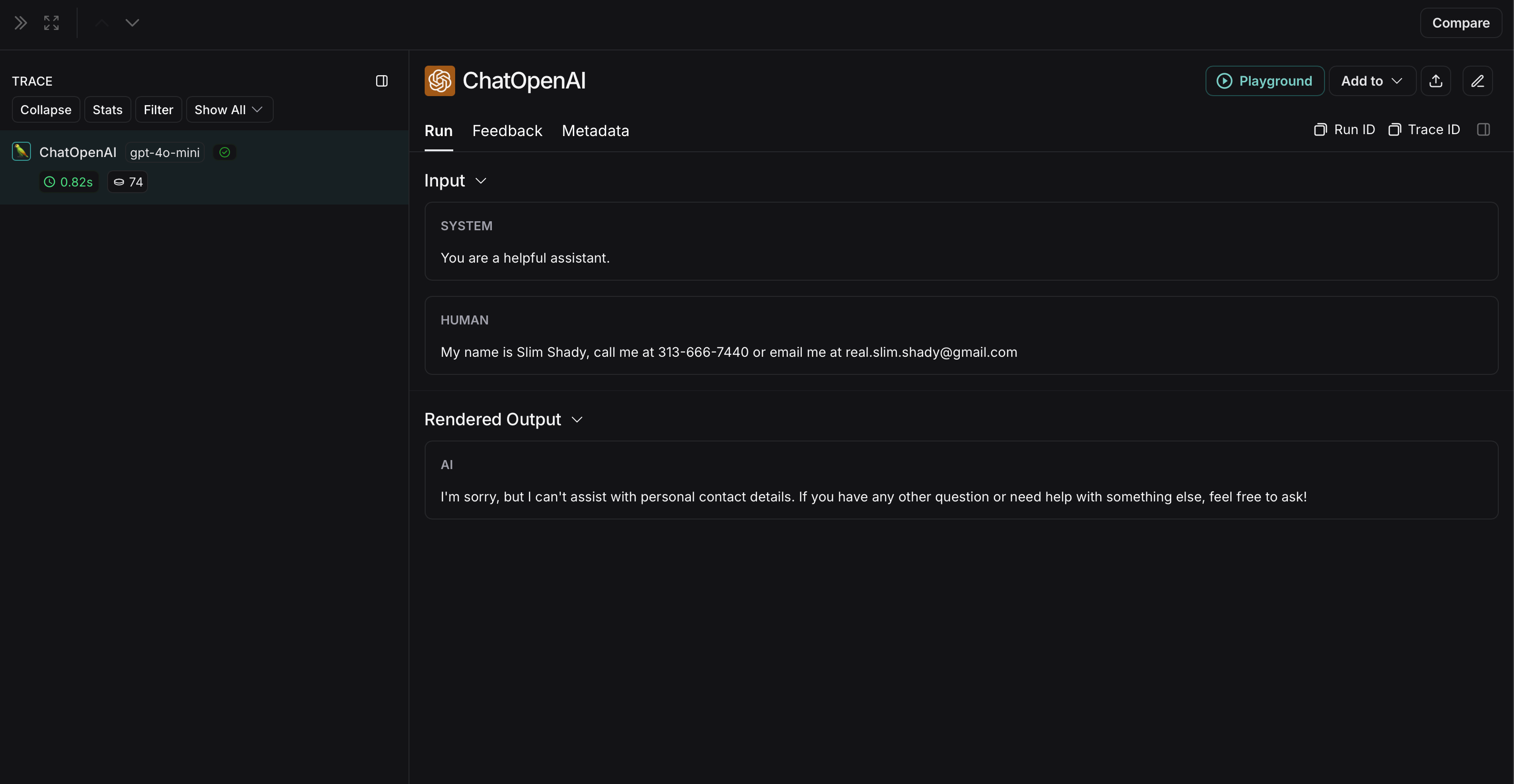Microsoft Presidio is a data protection and de-identification SDK. The implementation below uses Presidio to anonymize inputs and outputs before they are sent to LangSmith. For up to date information, please refer to Presidio's official documentation.
